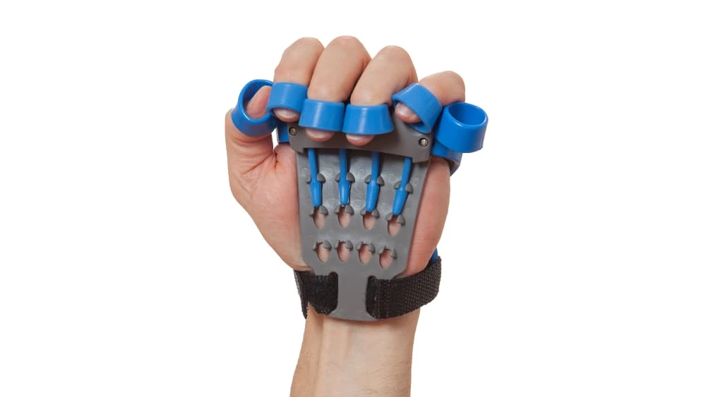 The finger band attachments on the Xtensor all connect into a grid system, so you can easily customize the level of tension specific to each finger as you extend and retract them through a natural range of motion. Regular use of the Xtensor can help relieve muscle tightness in the palms (caused by forceful repetitive gripping) and improve range of motion in the fingers, preventing pain and stiffness over time. The reverse grip exerciser can also strengthen and stabilize the muscles and tendons in the wrists and elbows, reducing the risk of common injuries and providing a tool for a more intense grip.