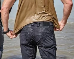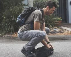 GORUCK’s Midweight Men’s Simple Pants combine the practical durability of workwear blue jeans with the comfort, flexibility, and rapid drying power of a two-way Nylon-Spandex stretch fabric. At 187 GSM, each pair is roughly half the thickness of traditional jeans, offering less restriction and a freer range of motion.