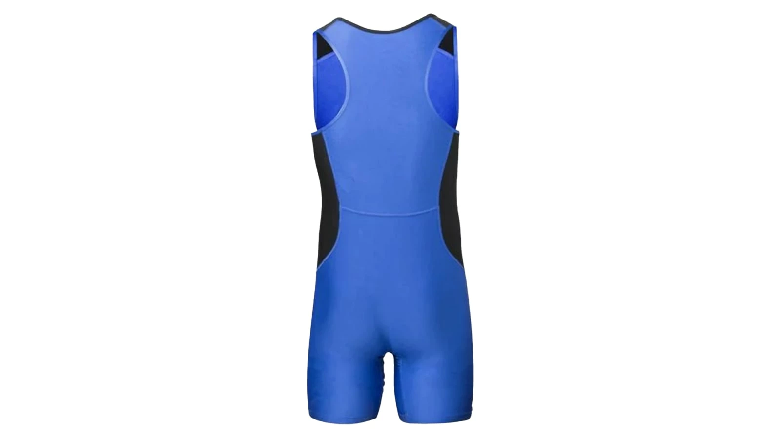 Available from sizes XS to XXXXL, this Royal Blue and Black version of the singlet also includes a unique, textured neck strap for a better stick on the clean and jerk.