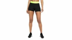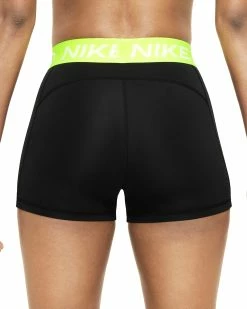 For any woman seeking a reliable, breathable athletic short that won’t slide, bunch, or irritate the skin, the Nike Pro 3” Short is a simple solution. Available here in Black / Volt / White with NIKE PRO branding across the waistband in white.
