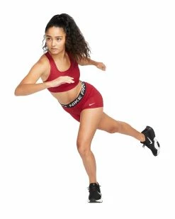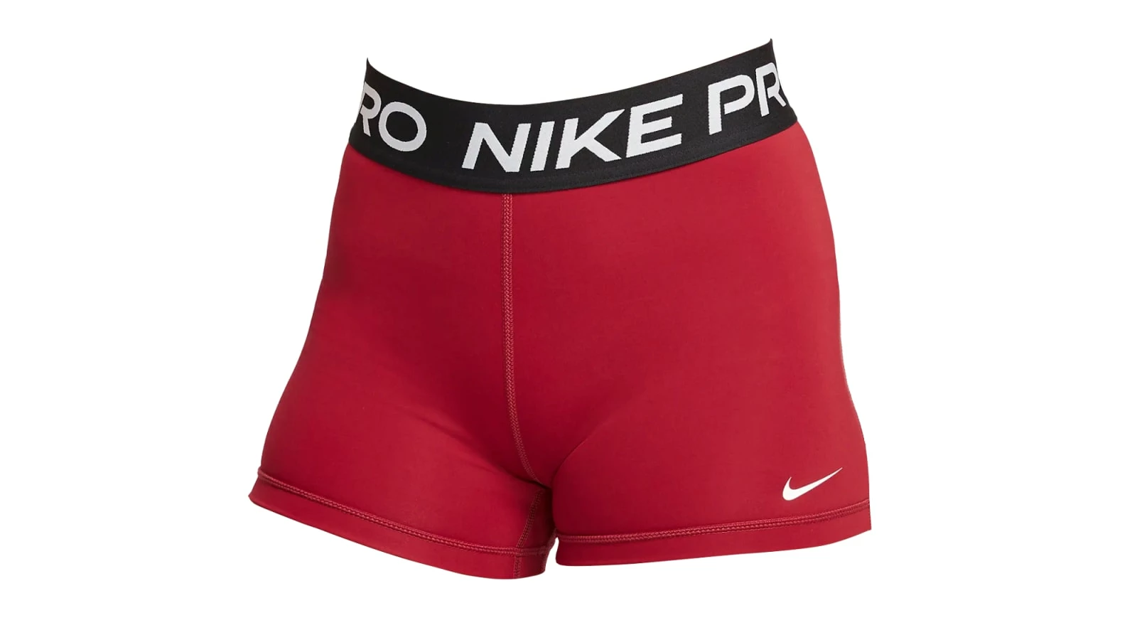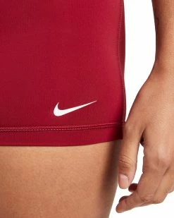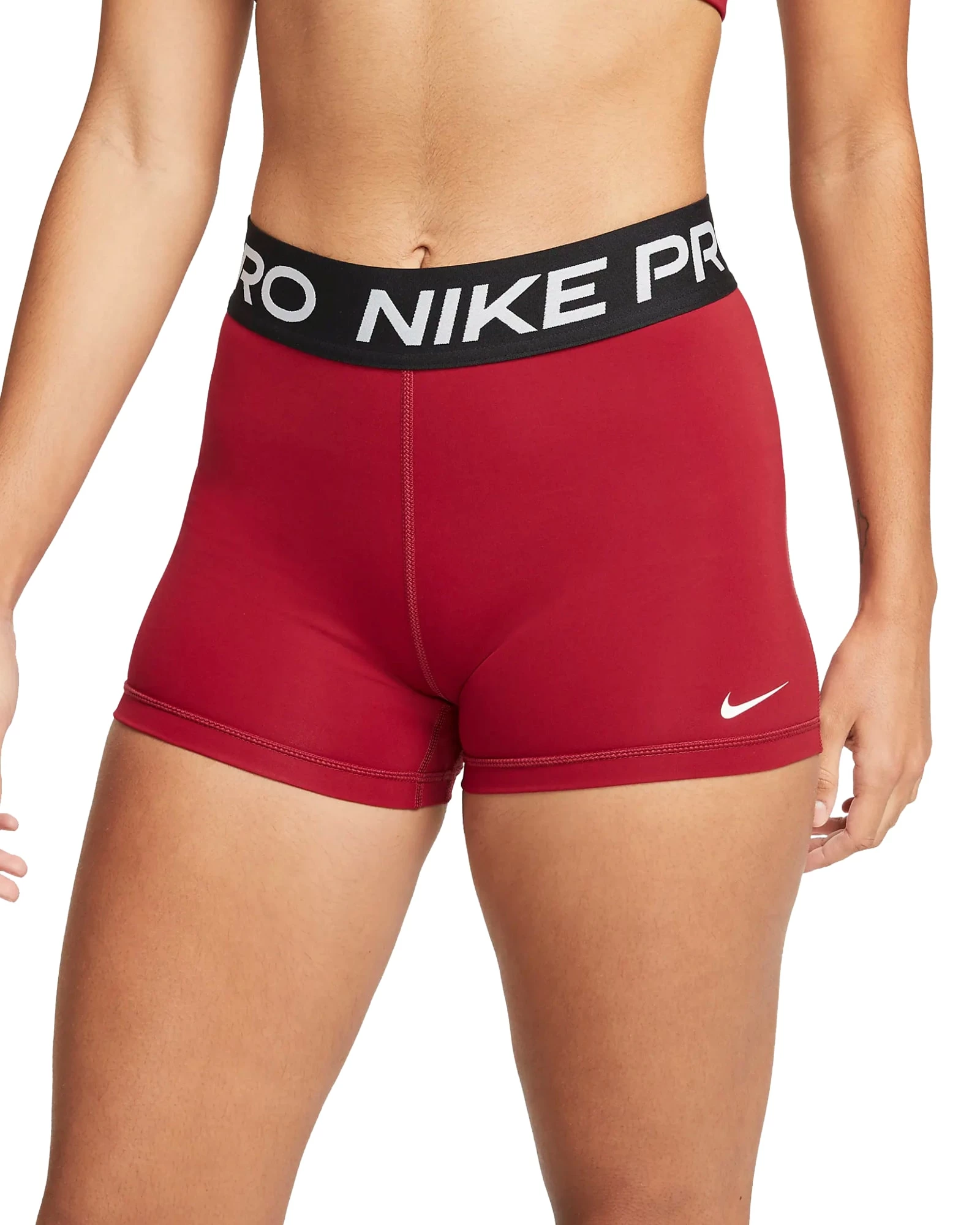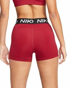 For any woman seeking a reliable, breathable athletic short that won’t slide, bunch, or irritate the skin, the Nike Pro 3” Short is a simple solution. Available here in Pomegranate / Black / White with NIKE PRO branding across the waistband in white.