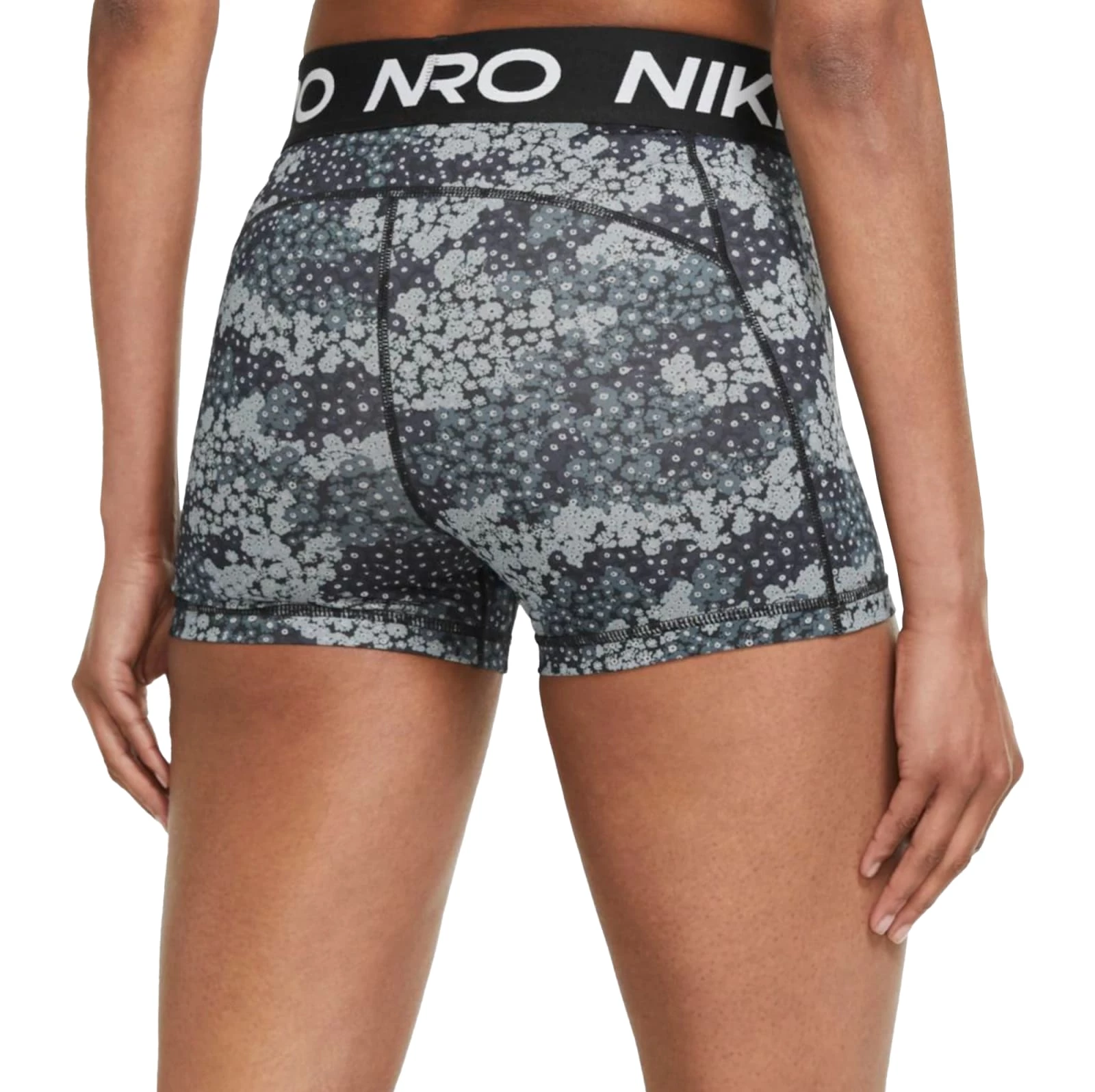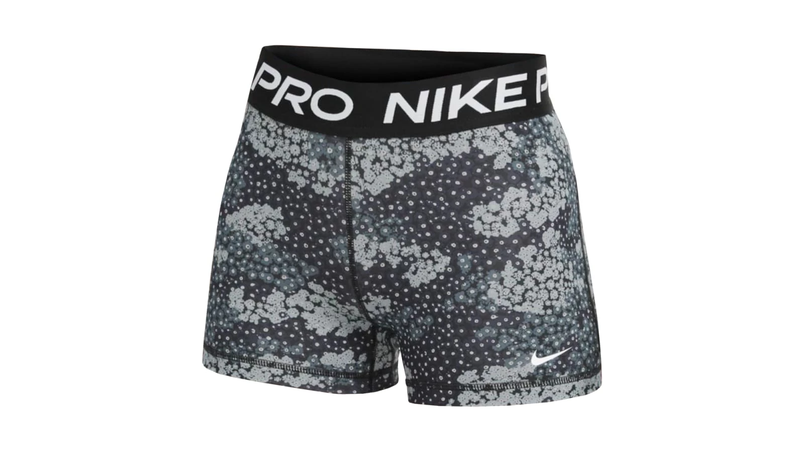 For any woman seeking a reliable, breathable athletic short that won’t slide, bunch, or irritate the skin, the Nike Pro 3” Short is a simple solution. Available here in Aviator Gray / Black / White with NIKE PRO branding across the waistband in white.