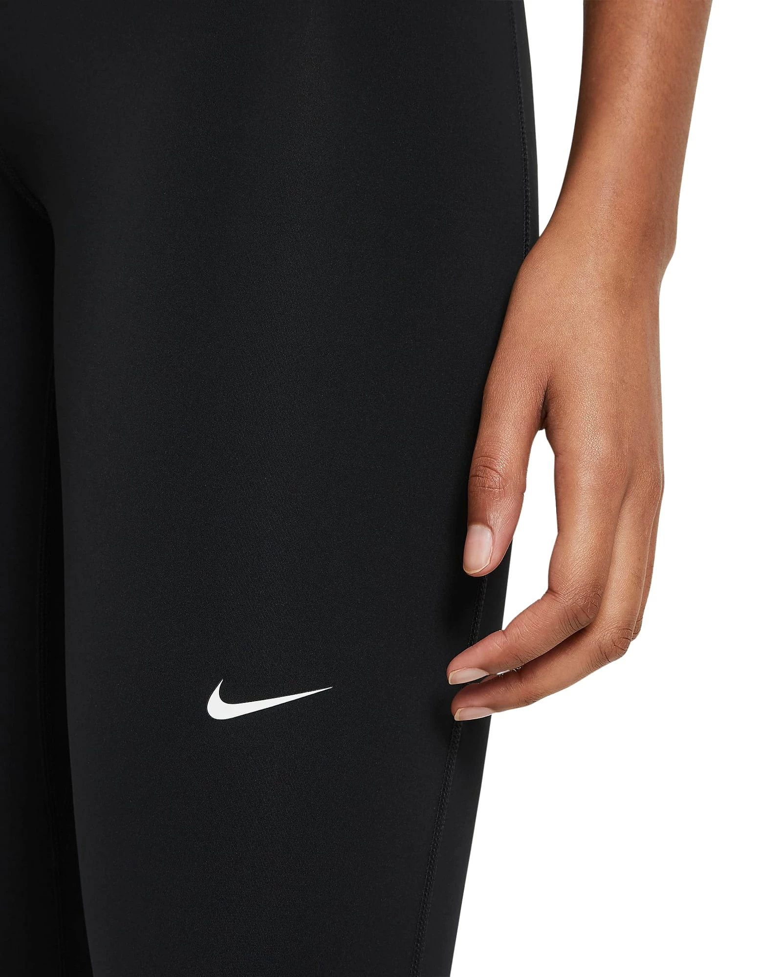 Nike’s poly-elastane women’s leggings feature mesh panels at the calves for breathability + a stretchy contoured fit that offers support and comfort without restricting range of motion.