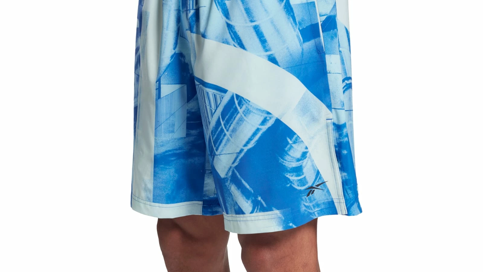 Available here in a Chalk Blue allover print, the Men’s Austin II Solid Short from Reebok features a lightweight, woven poly-elastane fabric with an 8” inseam and high side slits for improved freedom of movement. Advanced sweat-wicking properties and a tailored athletic fit further ensure that this short also stays cool, comfortable and breathable throughout any workout.