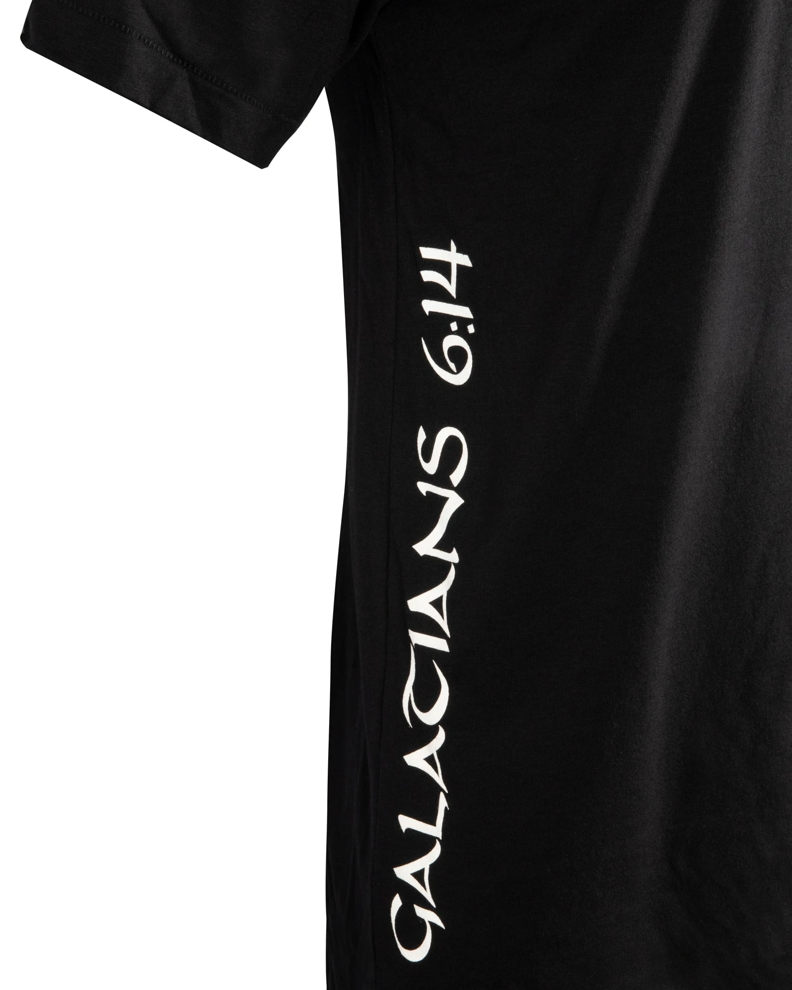 Available here in Black with a gray Rogue logo across the chest, this poly-cotton, athletic-cut tee also features one of Rich’s favorite Bible verses, Galatians 6:14, printed on the right side in stylized text.