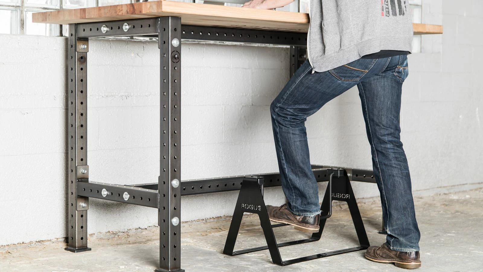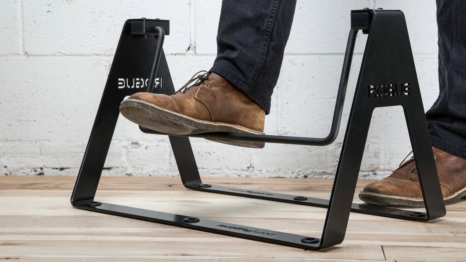Co-developed with MobilityWOD founder and accomplished physiotherapist Kelly Starrett, the Rogue Fidget Bar is a swinging, pendulum-style footrest designed for use with modern standup desks, as well as traditional work stations.