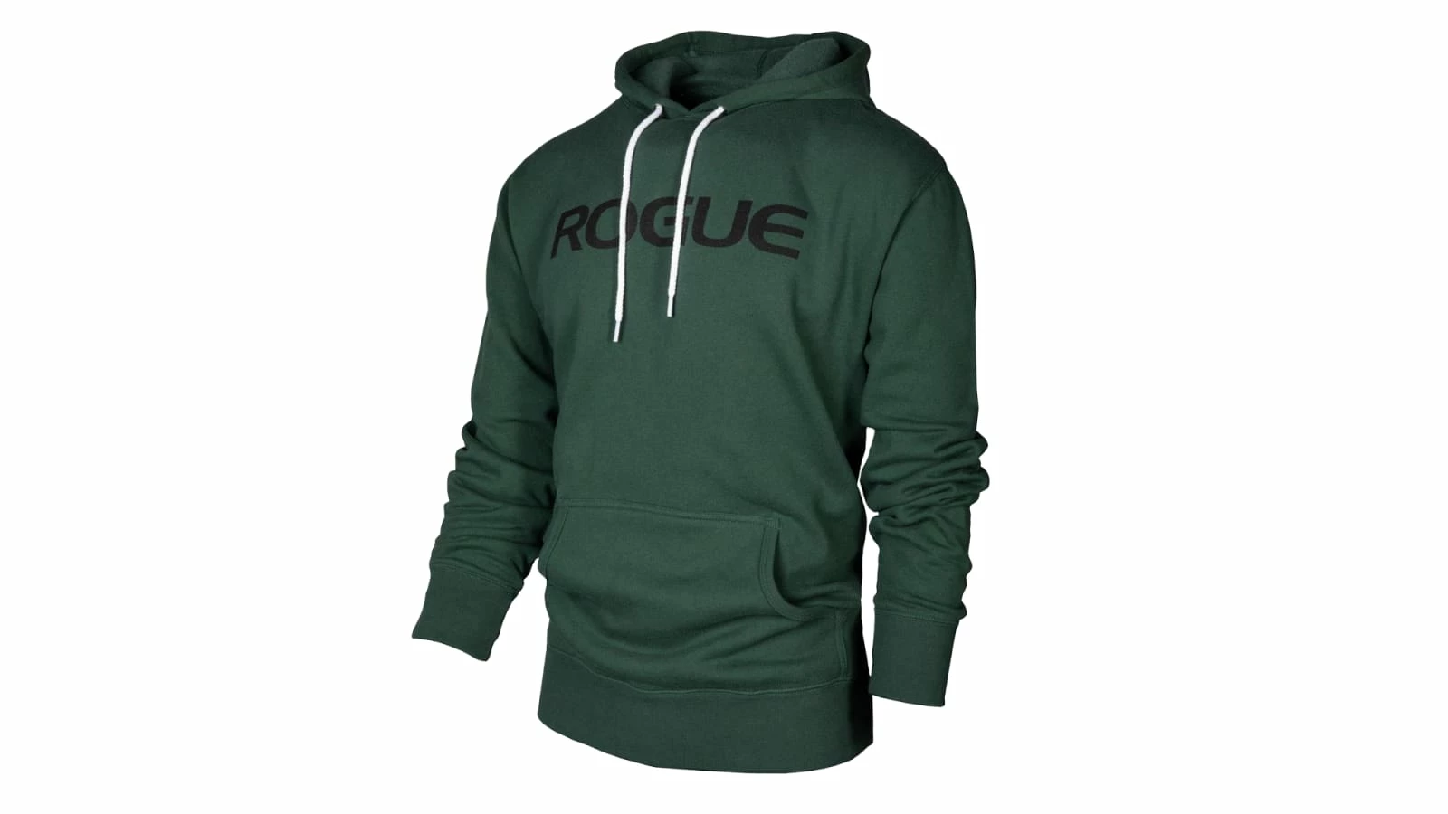 Designed in an athletic-cut, unisex fit with the Rogue logo across the chest, this all-seasons hoodie also includes a standard adjustable drawcord hood with nickel eyelets and a classic kangaroo pouch in front.