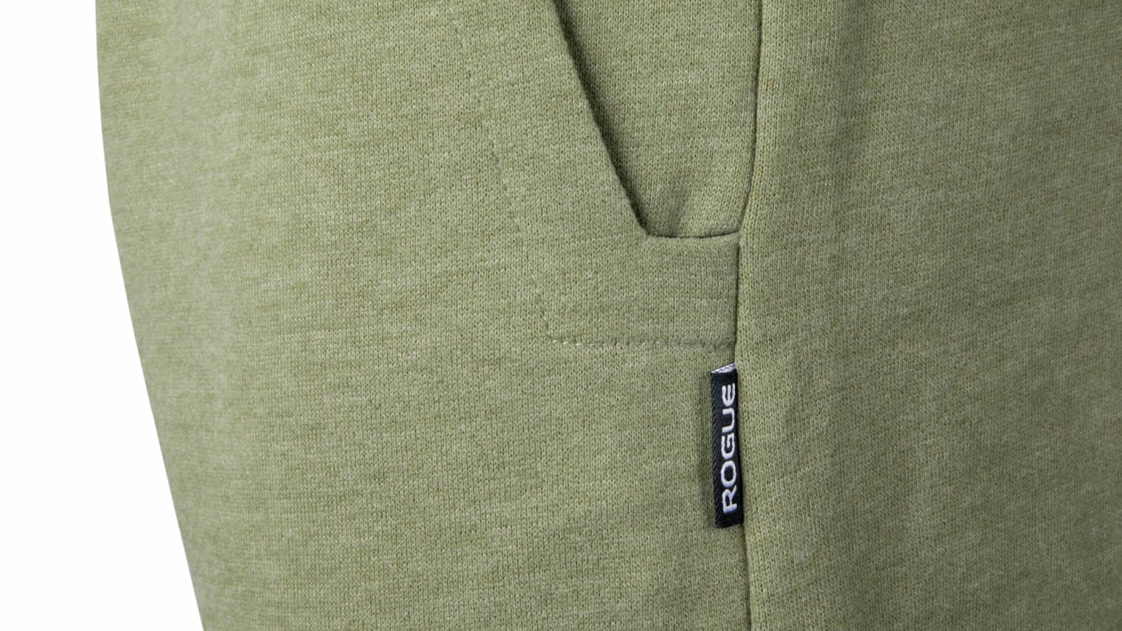 Available here in Heather Army with exclusive woven-label Rogue branding, these ergonomic sweatpants feature durable ribbing on the cuffs and waistband along with an adjustable drawcord, hidden rear welt pockets, and roomy side-seam pockets (with enough room for holding most smartphones).