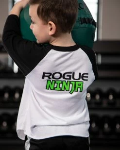 Exclusively for the kiddos, the Rogue Junior Ninja Shirt is a three-quarter sleeve, baseball-style tee with a ninja-fied cartoon version of the Rogue “R” logo on the front in black and green.