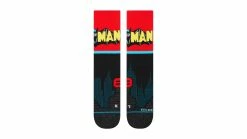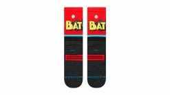 Stance’s officially licensed Batman crew socks feature the retro 1960s Batman tv show / comic book logo in a gold, red, and black design.