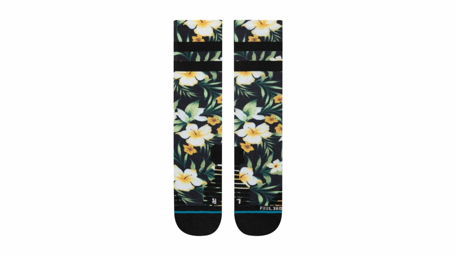 Stance’s colorful and tropical Terrace performance crew socks are durable enough for a high-intensity workout and comfortable enough for a day on the couch. Equipped with a reinforced heel and toe, special anatomical cushioning, and mesh airflow panels to keep your feet cool and comfortable, this exclusive design also features Stance’s advanced FEEL360 and InfiKnit technology, which help prevent tears and eliminate odor and moisture as you train.