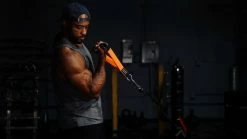 The patent pending design uses Sling Shot material that stretches, allowing a greater range of motion compared to standard attachments. The stretch of the material creates a banded feeling for a greater “pump” as you can get deeper in the movements, promoting greater muscle contraction and better core stabilization.
